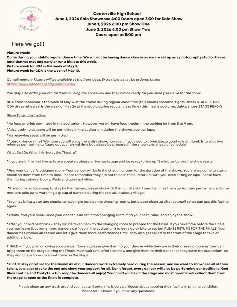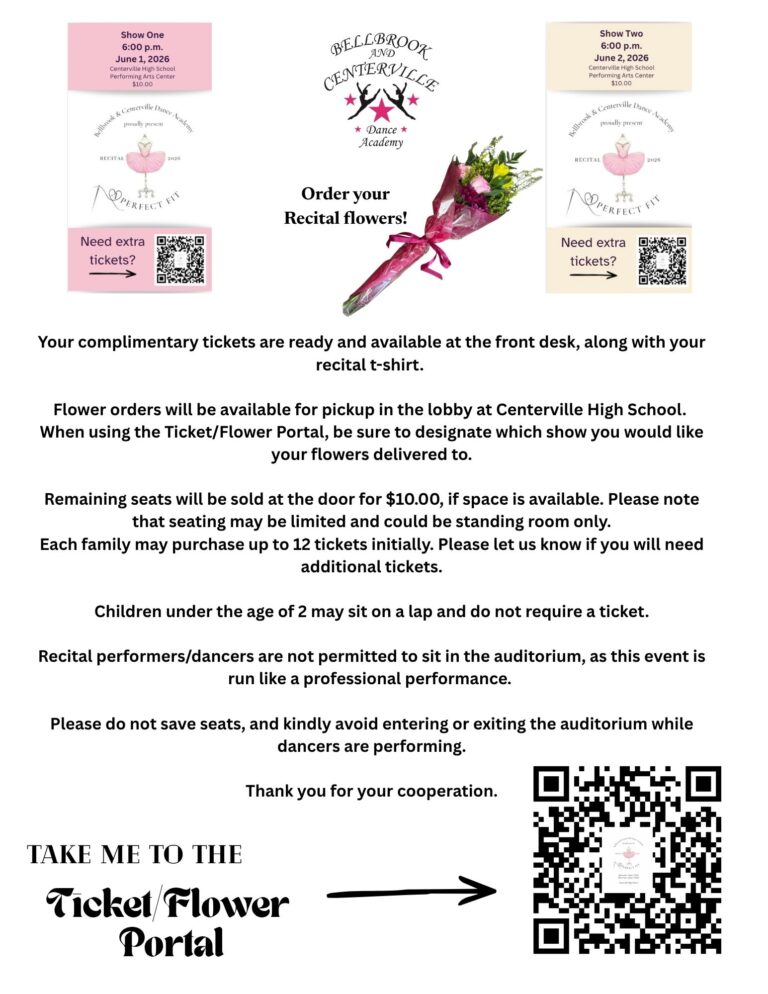 • Spring Recital June 1 & 2, 2026